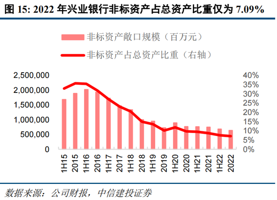此外,吉祥、兴业等股份行现在的非标资产敞口也处于各自的历史最低水平。其中,吉祥银行非标资产畛域为止2022年末仅为1047亿元,占总体资产比重仅为1.97%,较2017年9.29%的占比已大幅压降。兴业银行非标资产畛域为止2022年末为6372亿元,占总资产比重为7.09%,较2015年的峰值也达成了大幅压降,现在处于历史最低点。举座来看,现在以招行、吉祥、兴业为代表的股份行非标资产敞口均处于较低水平,且均达成充分派备计提,投资者对该类风险无需过于牵记。