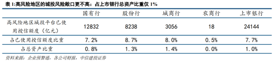 图表:高风险地区的城投风险敞口更不高:占上市银行总资产比重仅1%
