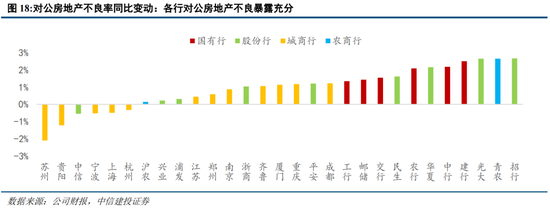 自信图表:对公房地产不良率同比变动:各行对公房地产不良流露充分