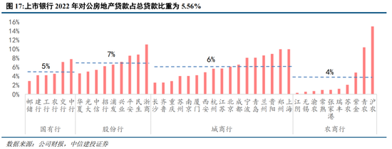 图表:上市银行2022年对公房地产贷款占总贷款比重为5.56%