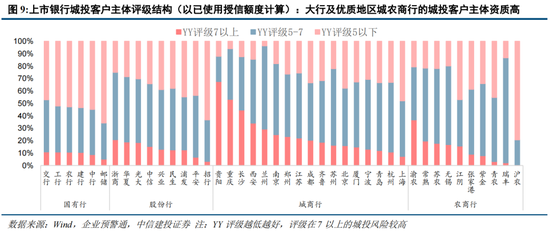 图表:上市银行城投客户主体评级结构(以已使用授信额度运筹帷幄):大行及优质地区城农商行的城投客户主体天禀高